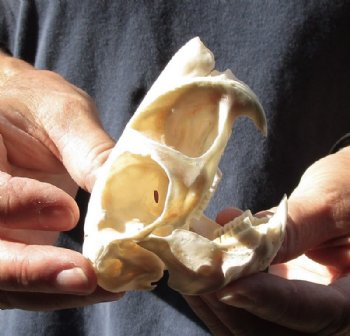 South African Spring Hare skull (Pedetes capensis) measures approximately 3-1/2 inches long and 2 inches wide.  The South African springhare or springhaas is not actually a hare, but a member of the order Rodentia.  It is one of two living species in the genus Pedetes, and is native to southern Africa.  The springhare resembles a small kangaroo (though unrelated) with well-developed hind legs, which allow it to leap over 2 m (6 ft 7 in).  It is for this ability that it gets its name.  All of our springhare skulls are commercial grade and imperfect.  They will have imperfections due to the natural aging process and living in the wild--scars, blemishes, rub areas, broken/missing teeth, bug bite marks, etc. - Jaw not glued. Review all photos.  These springhare skulls have been cleaned and cleared for legal entry into the United States by the U.S Fish and Wildlife Service and U.S Customs.