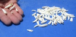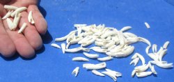 Alligator teeth in bulk and individual large alligator tooth hand picked for making alligator tooth necklaces, and alligator tooth pendants.  Alligator teeth are measured around the curve of the tooth using a cloth tape measure.  3/4 inches and Up alligator teeth are sold in lots of 1 piece, 2 pieces, 3 pieces, 10 pieces and 100 pieces. These gator teeth were legally purchased from a licensed alligator farm or from a state or federal controlled hunt.