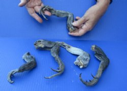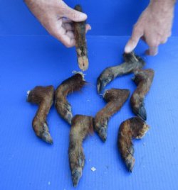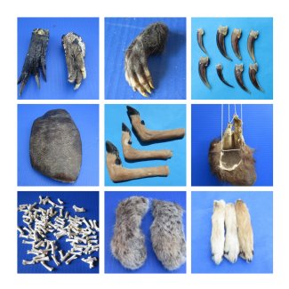 We sell wholesale animal feet, wholesale animal claws, wholesale animal tails and wholesale animal heads. We have For Sale red fox claws, coyote claws, badger claws and more. Animal claws are used in making claw jewelry, necklaces, bracelets and in Native American crafts. Our assortment of Bulk animal tails For Sale includes wholesale coyote tails, wholesale fox tails, wholesale lynx tails, wholesale mink tails, wholesale raccoon tails, among others. Additionally, we carry rabbit feet, coyote feet, L shaped deer feet, straight deer feet used in making wall hooks for hanging hunting jackets and backpacks, and other taxidermy crafts. We also carry a huge assortment of Bulk, For Sale other wholesale animal feet, legs, tails and heads.