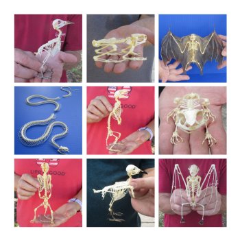 We hand picked and photographed these animal skeletons for sale. We carry Asian pond frog skeletons, sooty-headed bulbul skeletons, fruit bat skeletons, blue tailed bee eater bird skeletons, Javan giant frog skeletons. These animal skeletons have been cleaned and are ready for display. They are all real - NOT replicas and will have natural imperfections such as missing or broken teeth, scars, blemishes, scrapes, small cuts, etc.
