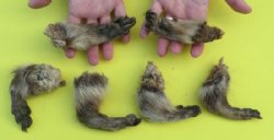 We sell wholesale animal feet, wholesale animal claws, wholesale animal tails and wholesale animal heads. We have For Sale red fox claws, coyote claws, badger claws and more. Animal claws are used in making claw jewelry, necklaces, bracelets and in Native American crafts. Our assortment of Bulk animal tails For Sale includes wholesale coyote tails, wholesale fox tails, wholesale lynx tails, wholesale mink tails, wholesale raccoon tails, among others. Additionally, we carry rabbit feet, coyote feet, L shaped deer feet, straight deer feet used in making wall hooks for hanging hunting jackets and backpacks, and other taxidermy crafts. We also carry a huge assortment of Bulk, For Sale other wholesale animal feet, legs, tails and heads.