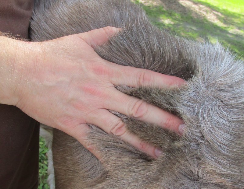 Nice Quality A Grade Reindeer hide, reindeer skin without legs imported from Finland, farm raised for food.  This hide measures approximately 45 inches long and 33 inches wide.  Review all photos. This reindeer fur without legs is professionally tanned and imported from Finland.  The legs have been trimmed off. This reindeer hide without legs is a natural and comfortable product and looks great as a wall decoration in a cabin or den, as furniture throws or decorative rugs but should not be walked or stepped on, to prevent shedding and breaking of the fur.  Reindeer skins and hides should be cleaned once a year with a standard vacuum on the lowest power.