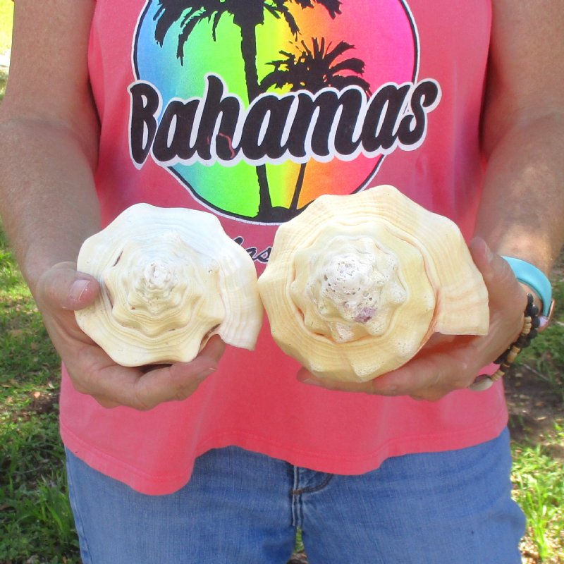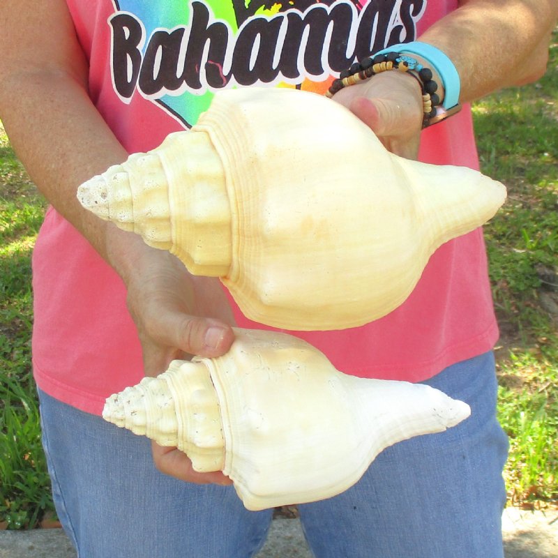 Available for Sale - 2 pc lot of West Indian Chank Shells, 9-1/2 & 9 inches for $37/lot