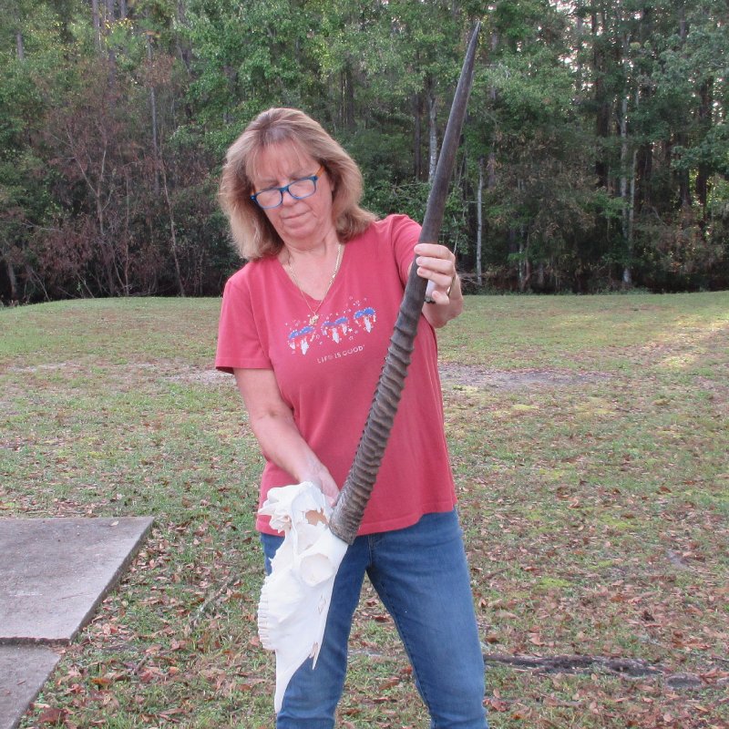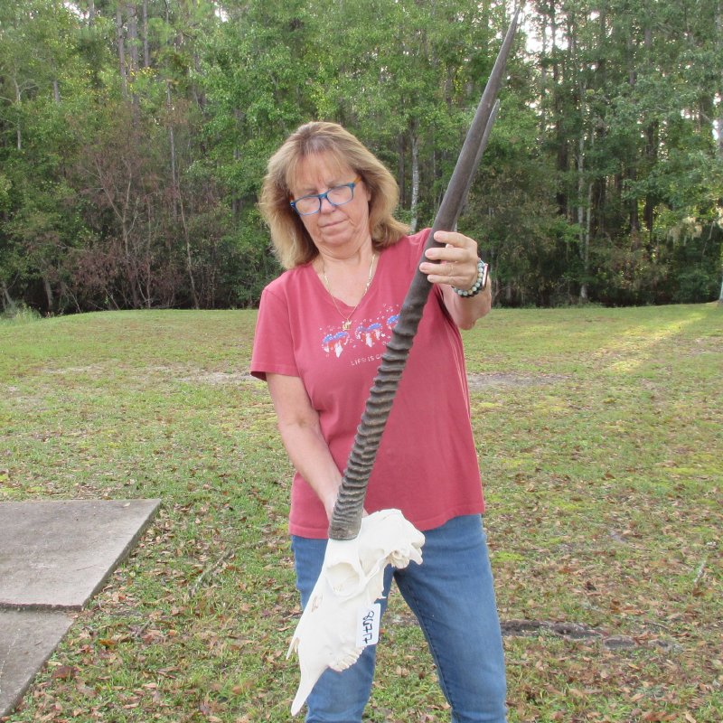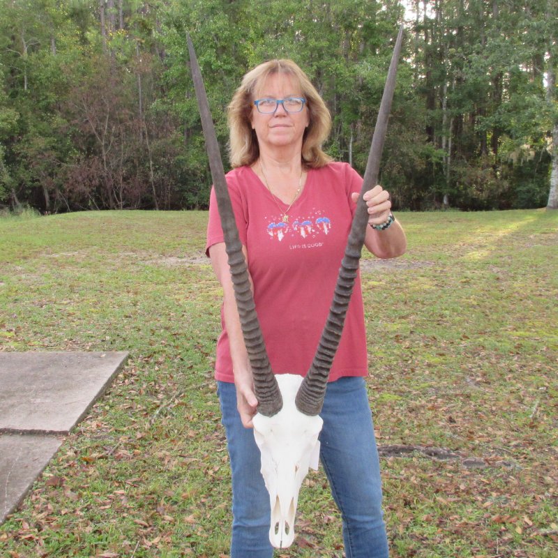 Our gemsbok horns on skulls are from wild African gemsbok and will have imperfections normally found on all wild animal horns. We are direct importers of African animal horns. These gemsbok horns are a by-product of the African government's culling programs and the African farming industry. These horns have been cleared for legal entry into the U.S. by the U.S. Fish and Wildlife Service and U.S. Customs Department.