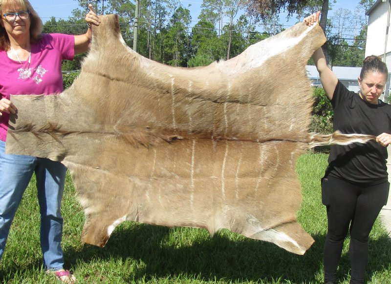B-Grade African kudu skin rug (Tragelaphus strepsiceros) for sale measuring 68" x 46" - $105