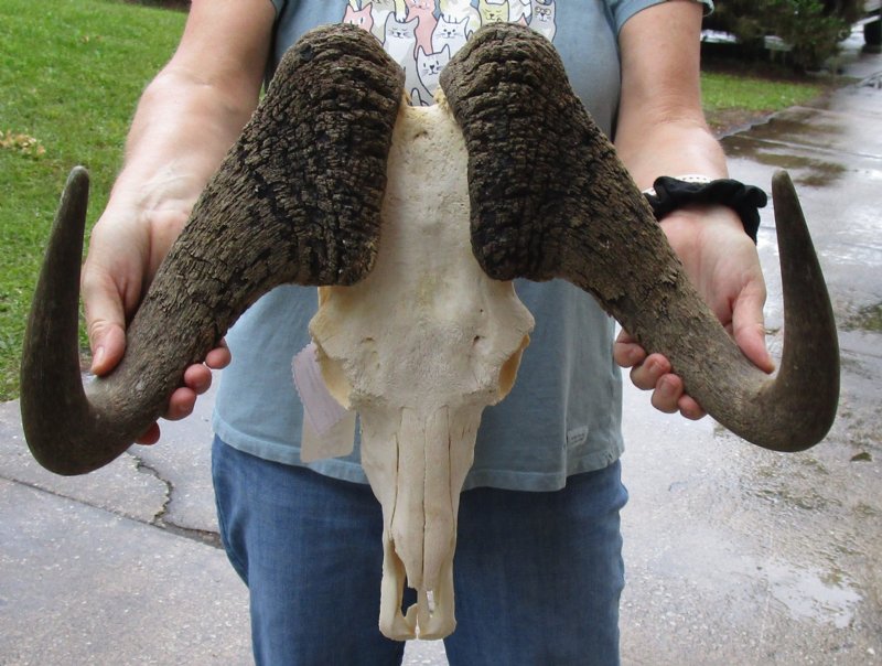 B-Grade, Male, African Black Wildebeest Skull with 19" Horn Spread - $85