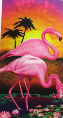 Are you a shop owner in a coastal town who is in need of wholesale beach towels for your customers? We sell a wide variety of wholesale beach towels that are stylish and practical. Having a pool party and need lots of towels? Check out our bulk pool towels that are perfect for drying off after your swim and lounging around the pool afterwards. We have a varied assortment of design styles to fit everyone's needs, such as wholesale Florida beach towels, wholesale Shark beach towels, wholesale flamingo beach towels, wholesale tie dye beach towels, wholesale pirate beach towels, wholesale lighthouse beach towels, wholesale sunset beach towels, wholesale dolphin beach towels. Our wholesale bulk beach and pool towels are 30 inches wide and 60 inches long. These wholesale towels are Fiber Reactive Velour and are made of 100% cotton. Some of these beach towels come with a hanger. Fiber reactive dyes form permanent covalent bonds with the cellulose fiber in cotton. This enables the towels to stay bright for years. Fiber reactive dyes are permanent dyes. Unlike inks, they do not rest on the fabric or coat the fabric; they chemically unite with the molecules that make up the fabric. They become part of the fabric. Our wholesale and bulk beach towels are perfect for Florida beach shops and Florida souvenir and gifts shops.