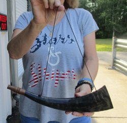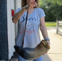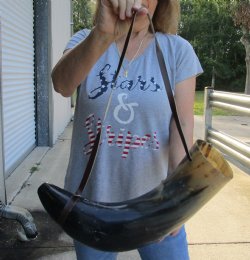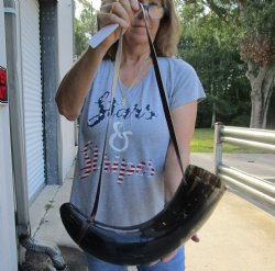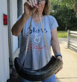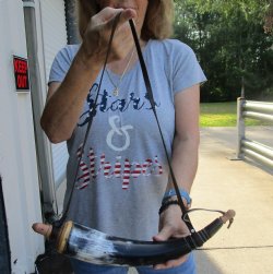 Hand picked, Polished buffalo blowing horns make a deep, rich sound when blown. They are blown like a trumpet or shofar, and come with a leather carry strap. Our carved cattle/cow powder horns come with a leather strap attached and several carved rings at the tip area, a wood finial at one end and a wooden plug at the tip end that can be twisted and removed in order to fill horn with gun powder. Hand picked, Polished Sheep horn Shofar.