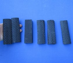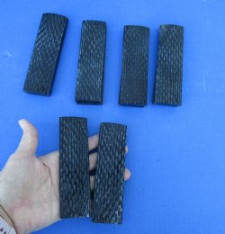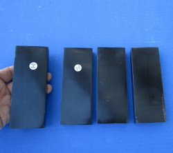 We carry buffalo horn knife scales.  Cylindrical knife scales 4-1/2 inches by 1 inch, faux stag jigged, impala horn pattern, black and white streaks, bark texture knife scales and polished buffalo horn knife scales are available.  We carry sizes 5 inches, 3-1/2 inches, 4-1/4 inches and others.  All of these are made from Indian water buffalo.