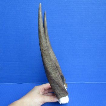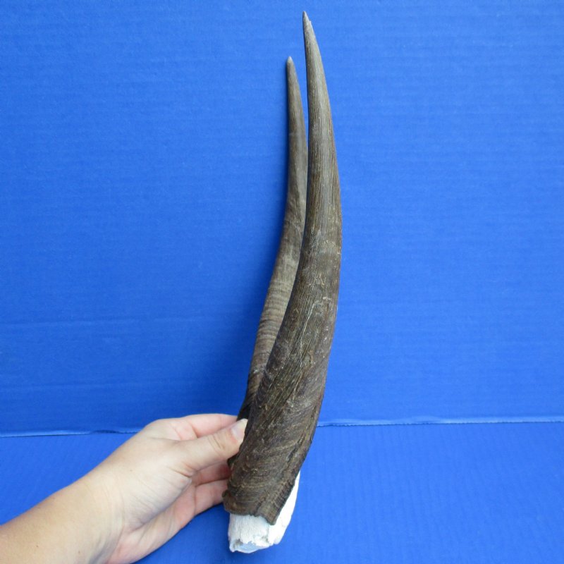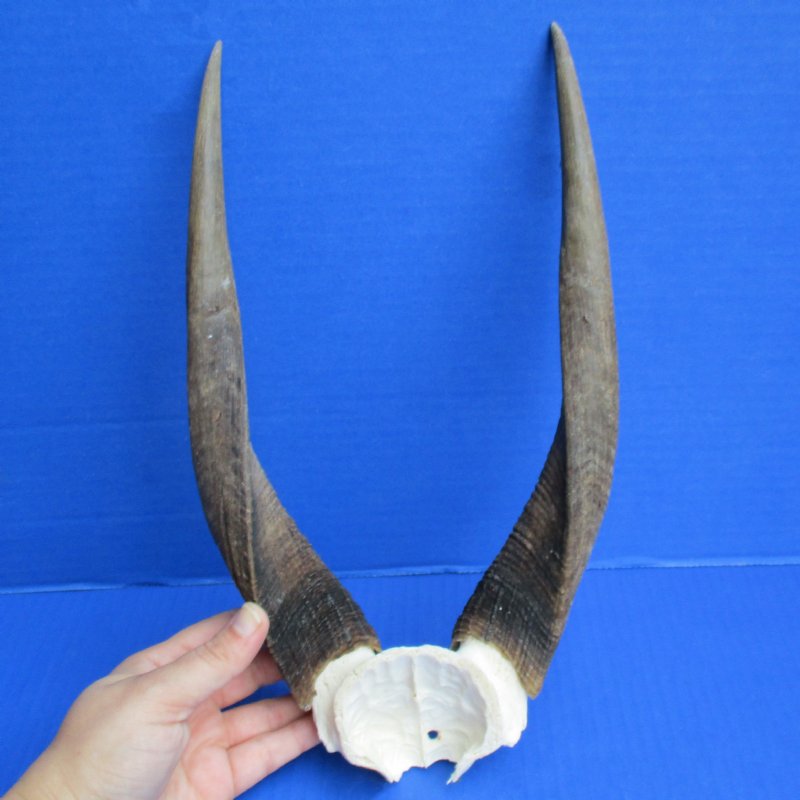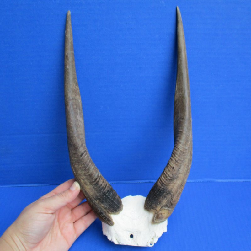 African Bushbuck Skull Plate (Tragelaphus scriptuswith horns measuring approximately 12 inches long, measured around the curve of the horns -- not straight with a wood ruler. - Review all photos. This is a real bushbuck skull with horns and will have imperfections from the animal living in the wild.