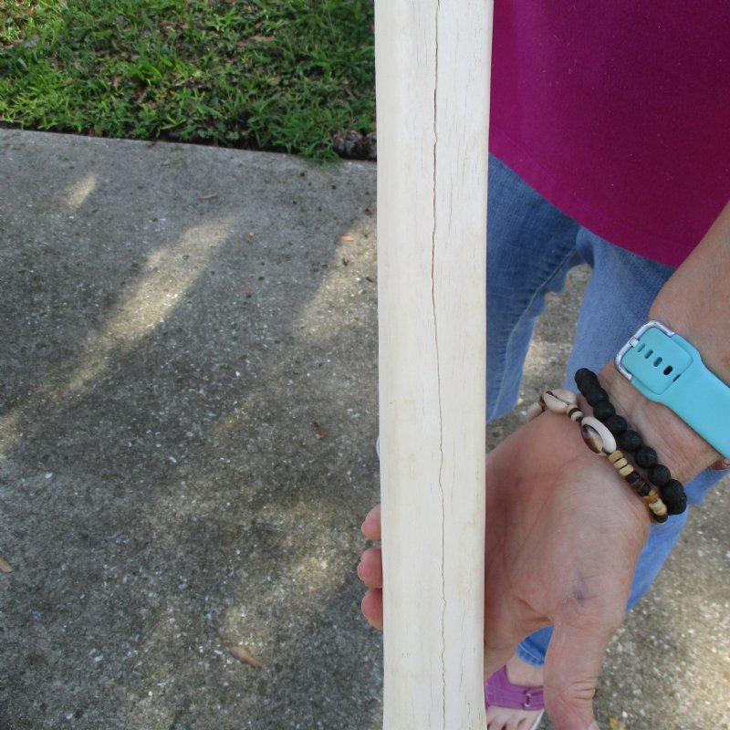 African Giraffe Metatarsal (Giraffa camelopardalis) for sale Leg Bone measuring approximately 21 inches long. This bone is from a real giraffe and will have imperfections such as cracks, tiny holes, fine lines, and chipped edges. Crack down center of bone. Review all photos. Giraffe leg bones are used for carving, scrimshaw art, making bone knife handles, and for numerous other craft projects.