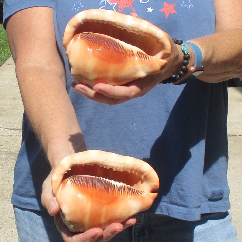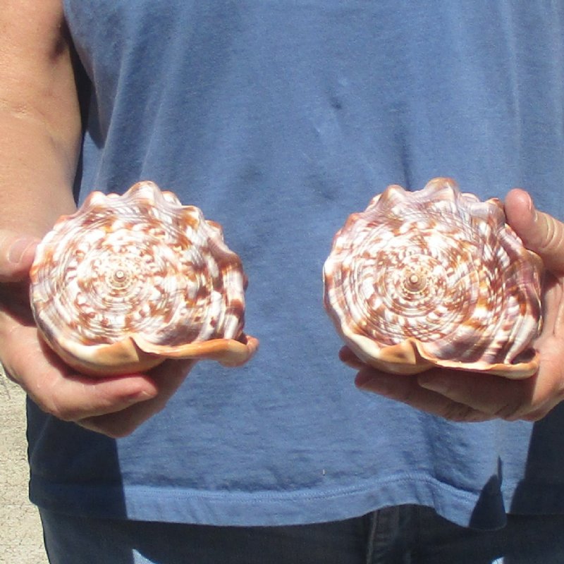 Buy these Two Cameo Bullmouth sea shells 5 inches long for $18/lot