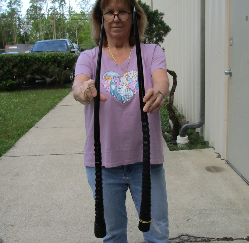 natural imperfections from living in the wild and fighting - cuts scars, blemishes, fraying, etc.  One of the horns has the core left inside - This is not a matching pair - Review all photos. Gemsbok horns are used for making gemsbok bows, shofars, furniture and blowing horns. Gemsbok horns are also used in crafting furniture, knife and cane handles and in numerous other taxidermy crafts.