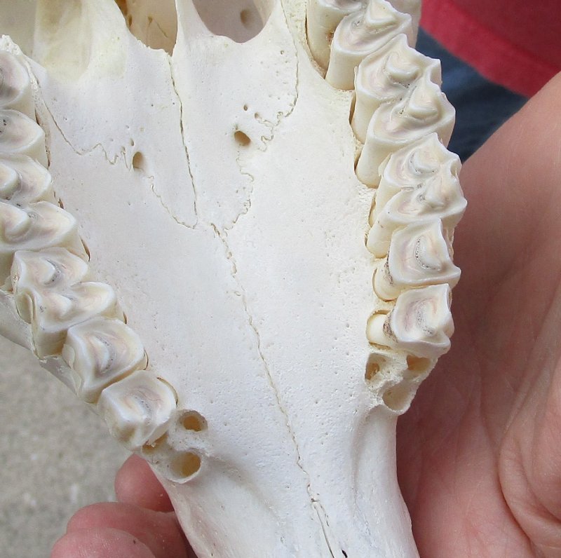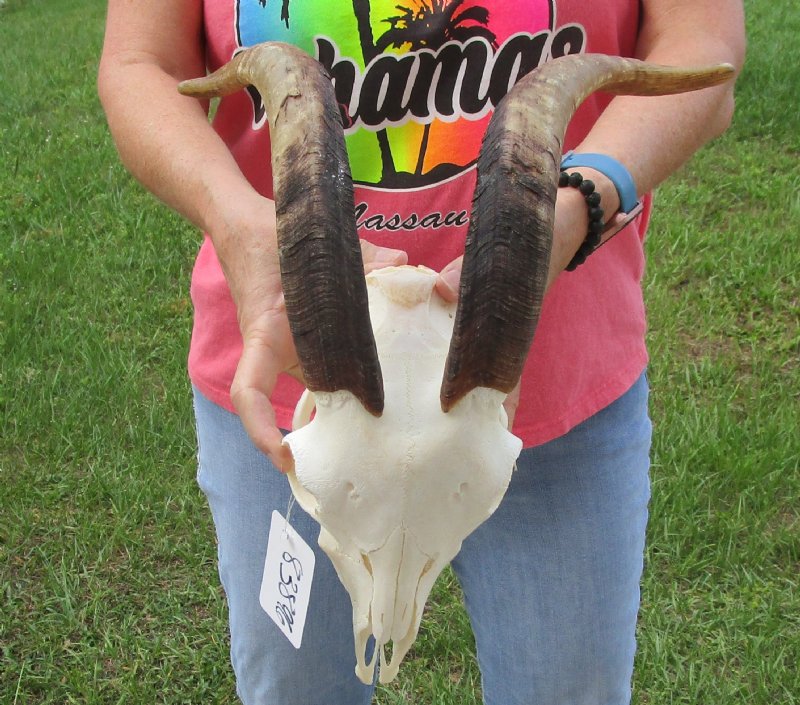 A-Grade African Domesticated Goat Skull with approximately 14 inch horns (measured around the curve of the horn with a cloth tape measure) and an estimated 10 inch long skull.  Missing a couple teeth - Review all photos. This is a domesticated African goat and will have imperfections due to the natural aging process and fighting and living -- scars, blemishes, rub areas, broken teeth, etc. All our goat skulls with horns are by-products of the African Government's culling program and farming industry. All products were professional cleaned and/or professionally tanned in South Africa and cleared by the U. S. Fish and Wildlife Services and U.S. Customs Services for legal entry into the United States.