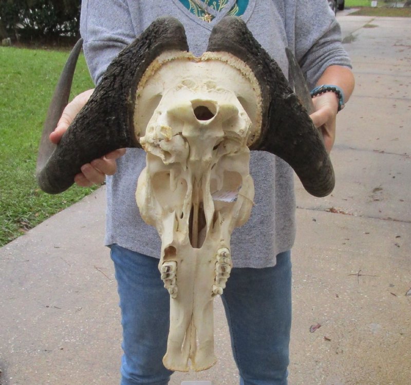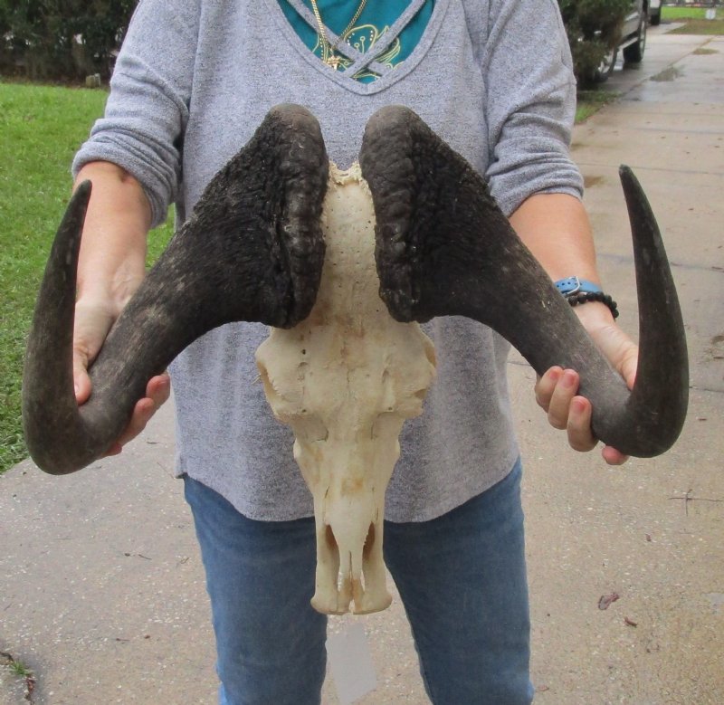 Buy this African Male Black Wildebeest Skull and 18" wide Horns - $95