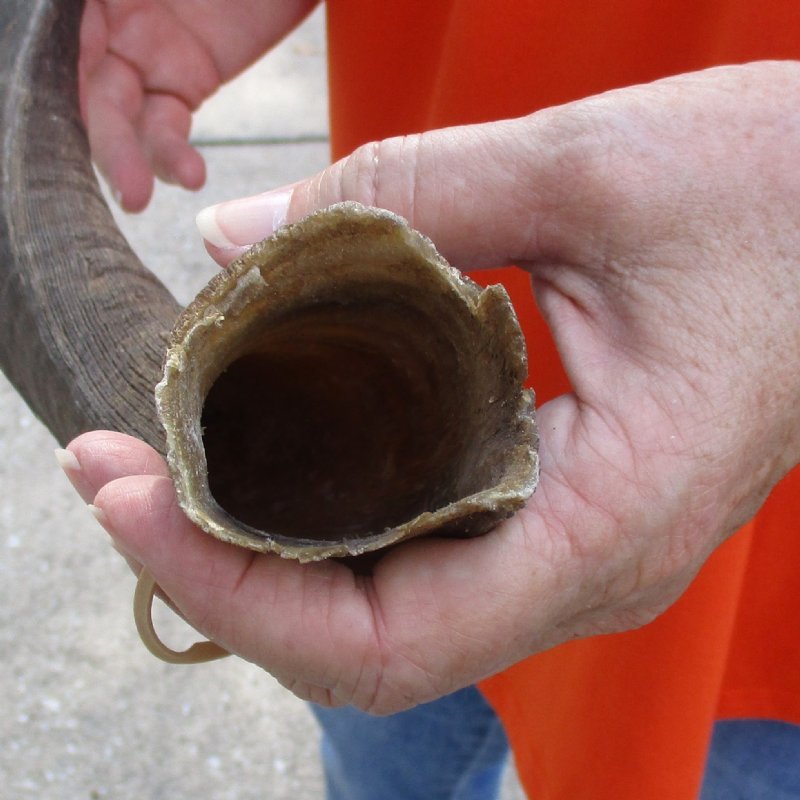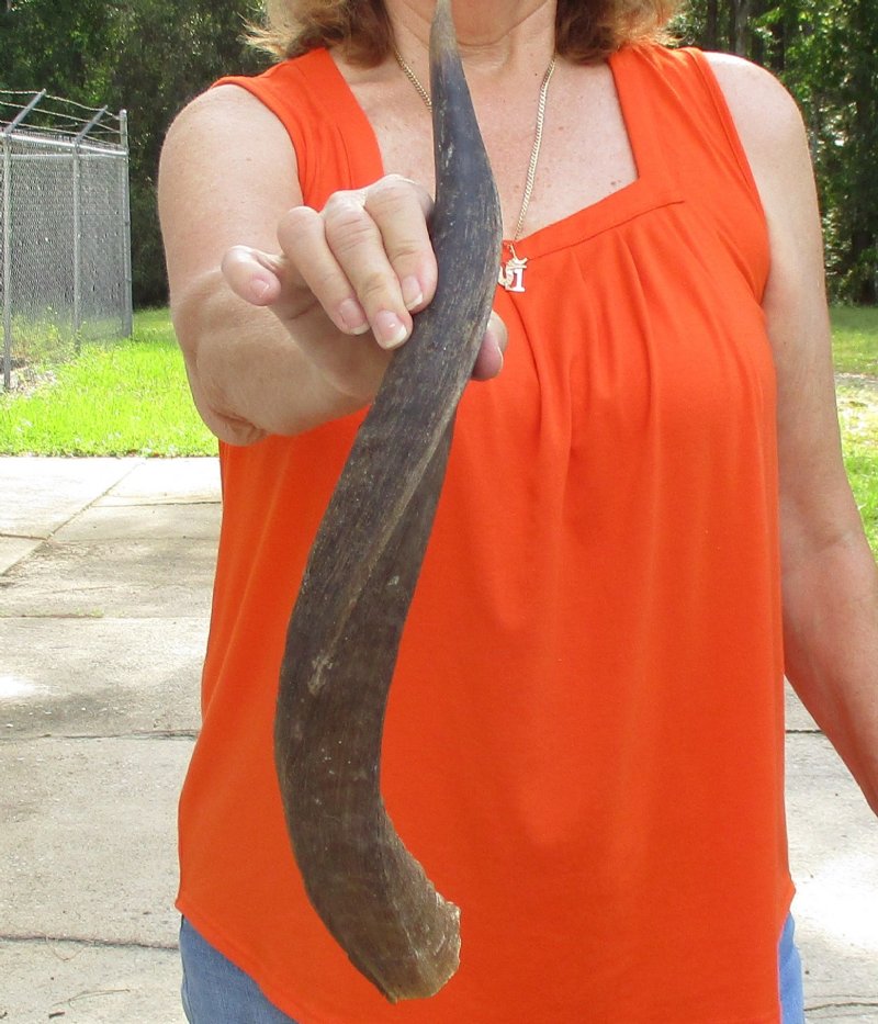 B-Grade Nyala horn for sale, (Tragelaphus angasii) imported from South Africa, measuring approximately 22 inches measured around the curl of the horn with a cloth tape measure - not straight with a wood ruler. These are B-Grade horns and will have splits, worm holes, small cracks, chips, rough patch, ect. - Review all photos. Nyala horns are used in making blowing horns, nyala horn instruments, furniture legs, lamps, sconces, knife handles, cane handles, inlaid crafts and numerous other taxidermy crafts.