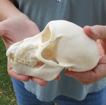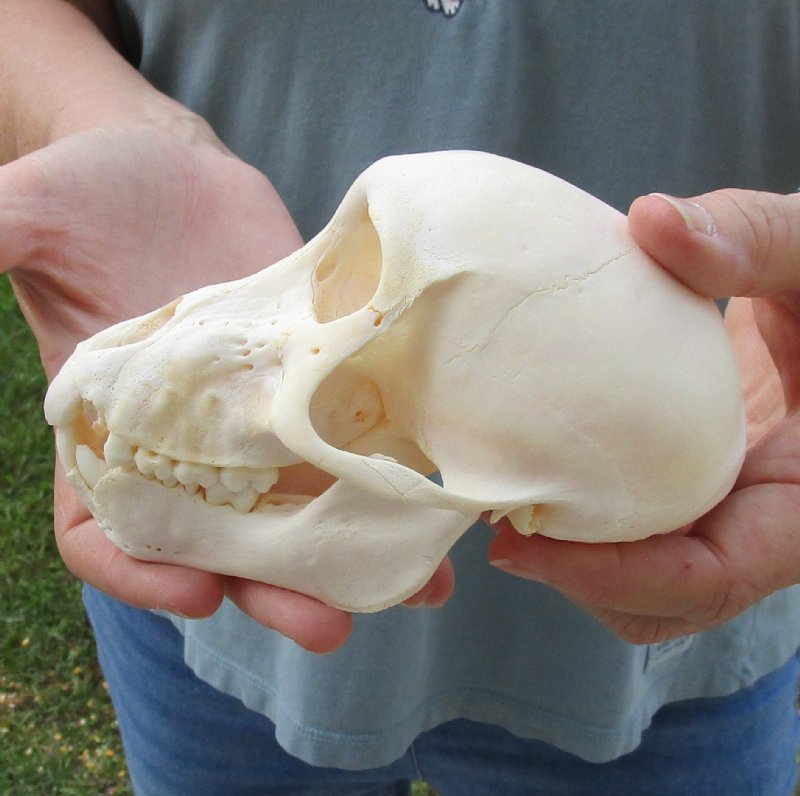 B-Grade Sub-Adult Chacma Baboon Skull for Sale, Papio ursinus, measuring approximately 5-3/4 inches long and 3-1/4 inches wide.   Review photos. The chacma baboon (Papio ursinus), also known as the Cape baboon, is, like all other baboons, from the Old World monkey family. It is one of the largest of all monkeys.