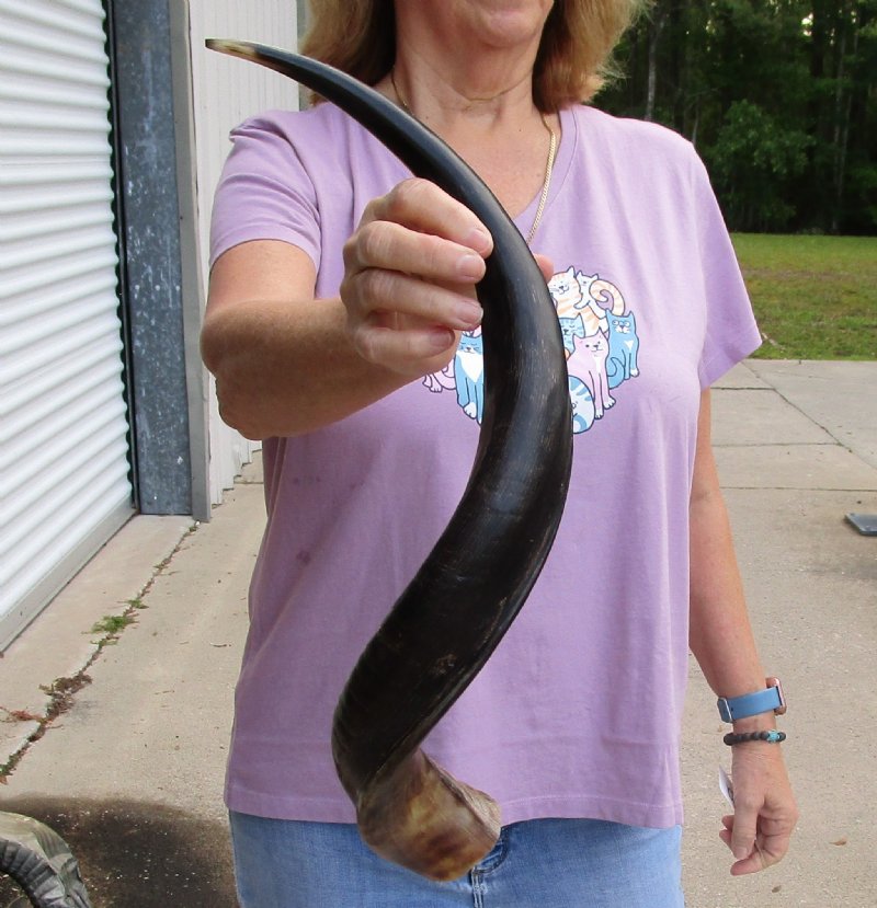 Polished Kudu horn for sale (Tragelaphus strepsiceros / Greater Kudu) imported from South Africa, measuring approximately 26 inch, measured around the curl of the horn - not straight.   review photos. Kudu horns are used in making shofars, blowing horns, kudu horn instruments, furniture legs, lamps, sconces, knife handles, cane handles, inlaid crafts and numerous other taxidermy crafts. Our African kudu horns are by-products of the farming industry and the African Government culling programs. The kudu horns have been professionally cleaned in Africa and cleared for entry into the United States by the U.S. Fish and Wildlife Service and U.S. Customs. We are direct importers of African wildlife products and have all Federal and State licenses.