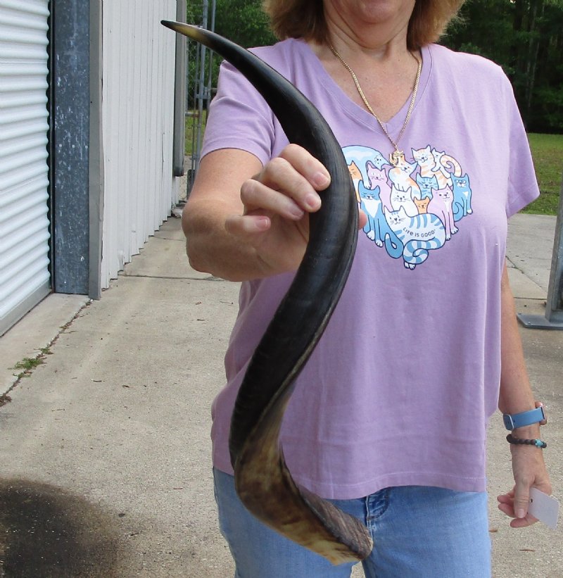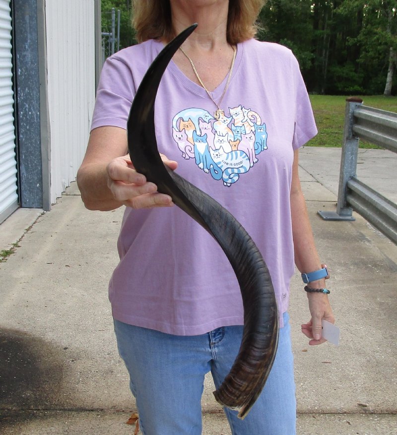Polished Kudu horn for sale (Tragelaphus strepsiceros / Greater Kudu) imported from South Africa, measuring approximately 29 inch, measured around the curl of the horn - not straight.   review photos. Kudu horns are used in making shofars, blowing horns, kudu horn instruments, furniture legs, lamps, sconces, knife handles, cane handles, inlaid crafts and numerous other taxidermy crafts. Our African kudu horns are by-products of the farming industry and the African Government culling programs. The kudu horns have been professionally cleaned in Africa and cleared for entry into the United States by the U.S. Fish and Wildlife Service and U.S. Customs. We are direct importers of African wildlife products and have all Federal and State licenses.