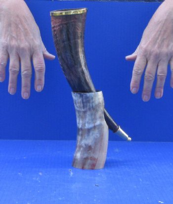 Carved Polished Buffalo Drinking horn and Horn Stand 12 inches $21