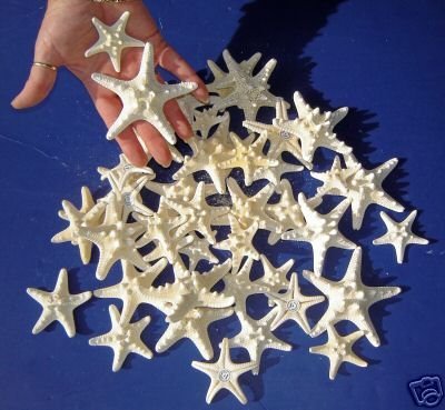 Case of white knobby starfish wholesale also called white armored starfish or white thorny starfish measuring between 2 inches and 3 inches in size  (SOME MAY BE A LITTLE UNDER OR OVER THIS SIZE) . Small white knobby starfish in bulk or bulk white thorny starfish, bulk armored starfish are for starfish decor as well as making beach wedding decorations and beach wedding favors. These small white armored starfish, or white knobby starfish, or white thorny starfish can easily be spray painted to match any tropical decor or wedding colors.