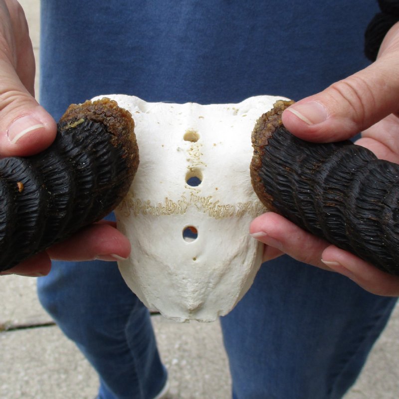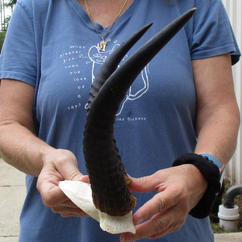 Common Reedbuck Skull Plate (Redunca arundinum) with horns measuring approximately 11 inches, measured around the curl of the horns. - Drill holes in skull plate. Review all photos. This Common Reedbuck skull is from a wild African Reedbuck and will have imperfections caused by the animal living in the wild and the natural aging process.