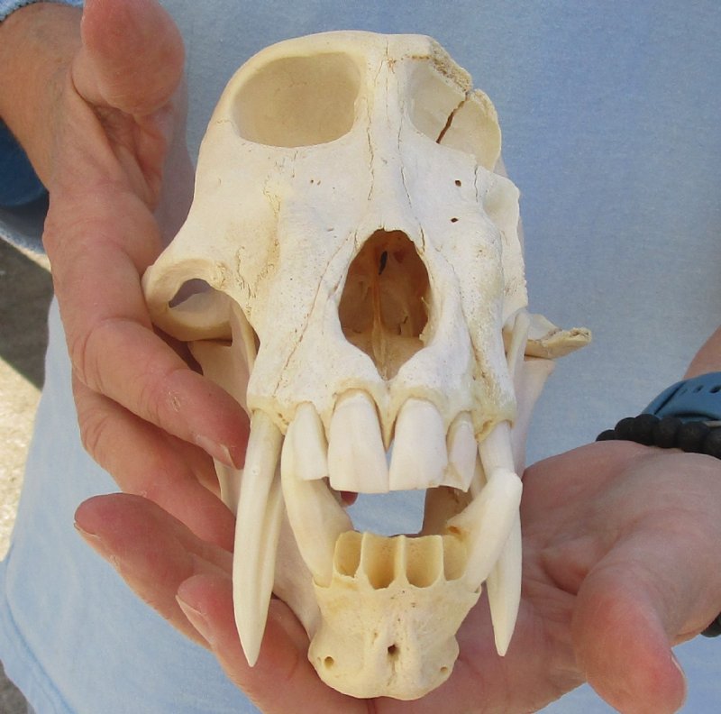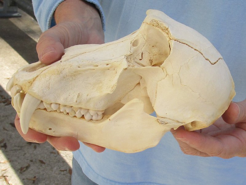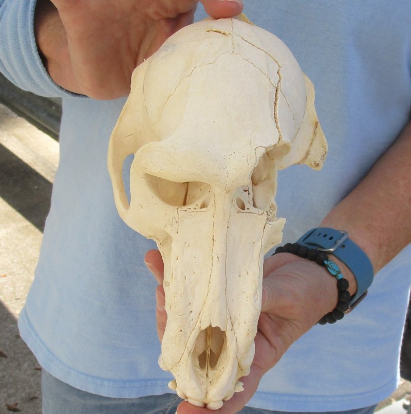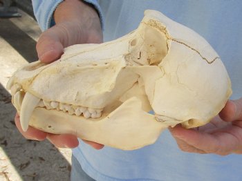 Craft Grade Male Chacma Baboon Skull, Papio ursinus, measuring approximately 8-1/2 inches long and 4-1/2 inches wide.   Missing teeth and damage to skull - Review photos. The chacma baboon (Papio ursinus), also known as the Cape baboon, is, like all other baboons, from the Old World monkey family. It is one of the largest of all monkeys.