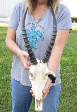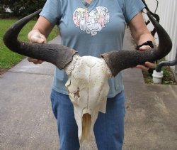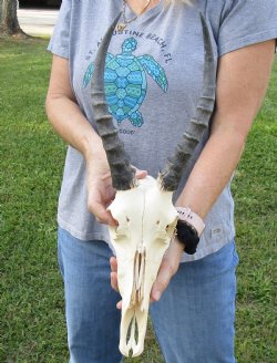 All of these discount cheap animal skulls with horns are slightly damaged or discolored more than normal. A discount cheap animal skull with horns, have noticeable worm holes, damaged skulls, no teeth, larger than normal patches, larger than normal drilled holes, or may be greatly discolored (more than normal). All our animal products are by-products of the African, Indian and Finland Government's culling program and farming industry. All products were professional cleaned and/or professionally tanned in South Africa, Finland and India and cleared by the U. S. Fish and Wildlife Services and U.S. Customs Services for legal entry into the United States.