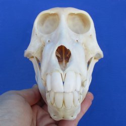 Discounted B and C Grade Chacma Baboon Skulls (Papio ursinus) for sale. Review all photos for damage, including missing teeth, holes, cracks, discoloration, etc. The Chacma Baboon, also known as the Cape Baboon, is, like all other baboons, from the Old World monkey family. It is one of the largest of all monkeys. All of our baboon skulls are commercial grade and imperfect. They will have imperfections due to the natural aging process and living in the wild--scars, blemishes, chipped/broken/missing teeth, etc. These baboon skulls were imported from South Africa and were professionally cleaned. They have been cleared by the U.S Fish and Wildlife Services and U.S Customs Services for legal entry into the United States.