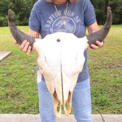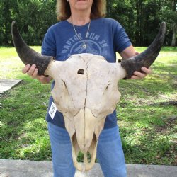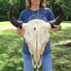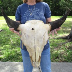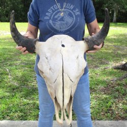 Shop our discounted B-Grade and Craft Grade North American Bison Skulls. All of our discounted Bison skulls will have worm holes, damage to skull, no teeth, larger than normal patches, larger than normal drilled holes, or may be greatly discolored (more that normal). These Bison skulls will have bug casings inside the skull from the cleaning process. The skulls may have a strong order. These are real bison (buffalo) skulls with horns and will have natural imperfections caused by the animal living in the wild.