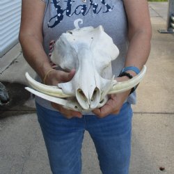 Discounted B-Grade and Craft Grade South African Bushpig (Potamochoerus larvatus) and Warthog (Phacochoerus aethiopicus) Skulls. These are discounted/damaged skulls - they may have damage including - missing teeth, discoloration, holes, cracks, damage to skull, etc. - Review all photos carefully. They will have imperfections due to the natural aging process and living in the wild--scars, blemishes, rub areas, broken/missing teeth, bug bite marks, etc. These Bush pig and Warthog skulls have been cleaned and cleared for legal entry into the United States by the U.S Fish and Wildlife Service and U.S Customs.