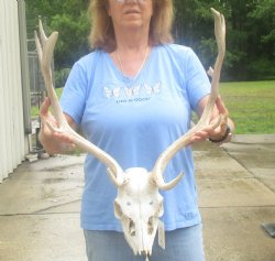 Shop our discounted B-Grade and Craft Grade Fallow (Dama dama), skull and skull plates from South Africa. These are B and Craft Grade skulls and skull plates and will have damage - Damage or missing nose, missing teeth, holes, broken or chipped horns, damage to eye sockets, cracks, worm holes, drill holes and may have some sort of discoloration. The horn height is measured from the base of the horn using a straight ruler to the longest point of the horn. The width is measured with a ruler straight across from the left furthest tip of one horn to the right furthest tip of the other horn. These horns cannot be removed for shipping. All of our fallow deer skulls & skull plates are from wild African deer and will have natural imperfections from the natural aging process and living in the wild. This animal was cleared by the U.S. Fish and Wildlife and U.S. Customs for legal entry into the U.S.