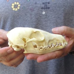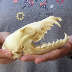 Grade B Real South African Cape Fox skull for sale (Vulpes chama) and North American Red Fox Skulls. Review all photos for missing teeth, cracks, holes, etc. These are Real Cape Fox and Red Fox Skulls - Not Replicas and will have natural imperfections normally found on all wild fox skulls. They have been cleared by US Fish and Wildlife and US Customs for legal import into the US. Our skulls have been cleaned and are ready for display; however, some may be off-white in color and have small patches of discoloration.