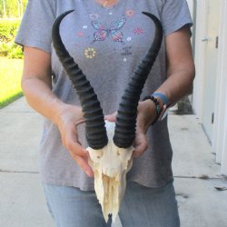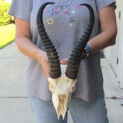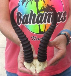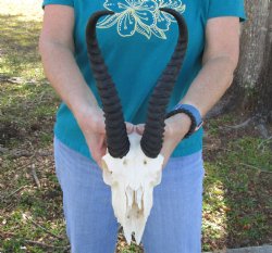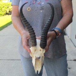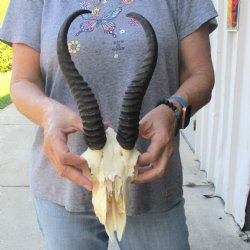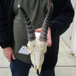 Shop for discounted B-grade and C-grade Springbok Skull and Skull Plates. The horns are measured around the curve of the horns using a cloth tape measure -- NOT straight with a wood ruler. These are B and C Grade Skulls and Skull Plates and will have damage - Damage or missing nose, missing teeth, holes, broken or chipped horn, damage to eye sockets, cracks, worm holes, drill holes and may have some sort of discoloration. All of our Animal products are by-products of the African Government's culling program and farming industry. All products were professionally cleaned and/or professionally tanned in South Africa and cleared by the U.S. Fish and Wildlife Services and U.S. Customs Services for legal entry into the United States.
