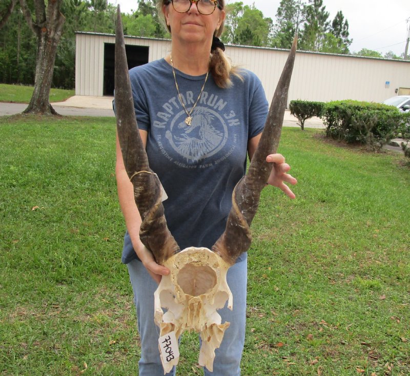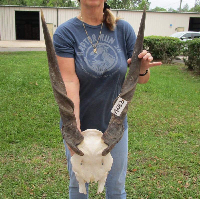 Extra Large African Male Eland (Taurotragus oryx) skull plate and horns for cabin decor and African themed decor. The horns measure approximately 31 inches around the curl of the horns. Review all photos. This African eland skull and horns has been professionally cleaned in South Africa and is ready for display as part of your rustic cabin decor. All our eland skull and horns are from wild African eland and will have imperfections normally found on all wild animal skulls and horns. Our African eland animal skulls and horns are obtained from the farming industry and the African government. All products have been cleared by the U. S. Fish and Wildlife Services and U.S. Customs Services for legal entry into the United States.