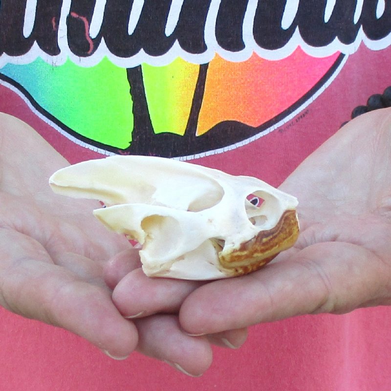 Extra Large Map Turtle skull measuring approximately 3 inches long and 1-3/4 inches wide. Turtle skulls can be used in Native American crafts. Map turtles follow the general body plan of the  more common sliders and painted turtles. -Review photos. However, unlike those turtles, most Map turtles have a well-defined keel running down the middle of the carapace. In a number of species this keel also has rather large knobs or spines jutting upward or backward.  This feature is responsible for the Map turtles other common name: Sawback turtles.