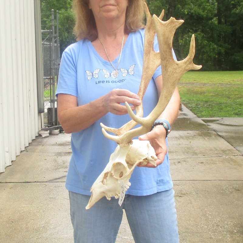 All our fallow deer skulls & skull plates are from wild African deer and will have natural imperfections from the natural aging process and living in the wild.  This animal was cleared by the U.S. Fish and Wildlife and U.S. Customs for legal entry into the U.S.