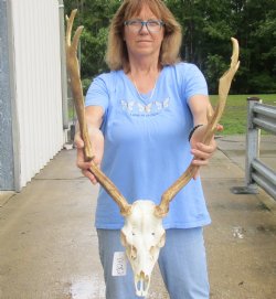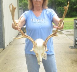 African Fallow Deer skull with Antlers and fallow deer skull plates (Dama Dama) hand picked and photographed are available for sale allowing you to see exactly what you are buying. Fallow Deer Antlers are measured from the base of the horn using a straight ruler to the highest point of the horn. The width is measured with a ruler straight across from the left furthest tip of horn to the right furthest tip of the horn. These horns cannot be removed for shipping. All of our fallow deer skulls and skull plates are from wild African Fallow Deer and all will have natural imperfections caused by the animal fighting and living in the wild. They will have imperfections due to the natural aging process -- scars, blemishes, rub areas, broken teeth, bug bite marks, etc. All our fallow deer skull and horns and skull plates are by-products of the African Government's culling program and farming industry. All products were professional cleaned in South Africa and cleared by the U.S Fish and Wildlife Services and U.S Customs Services for legal entry into the United States.