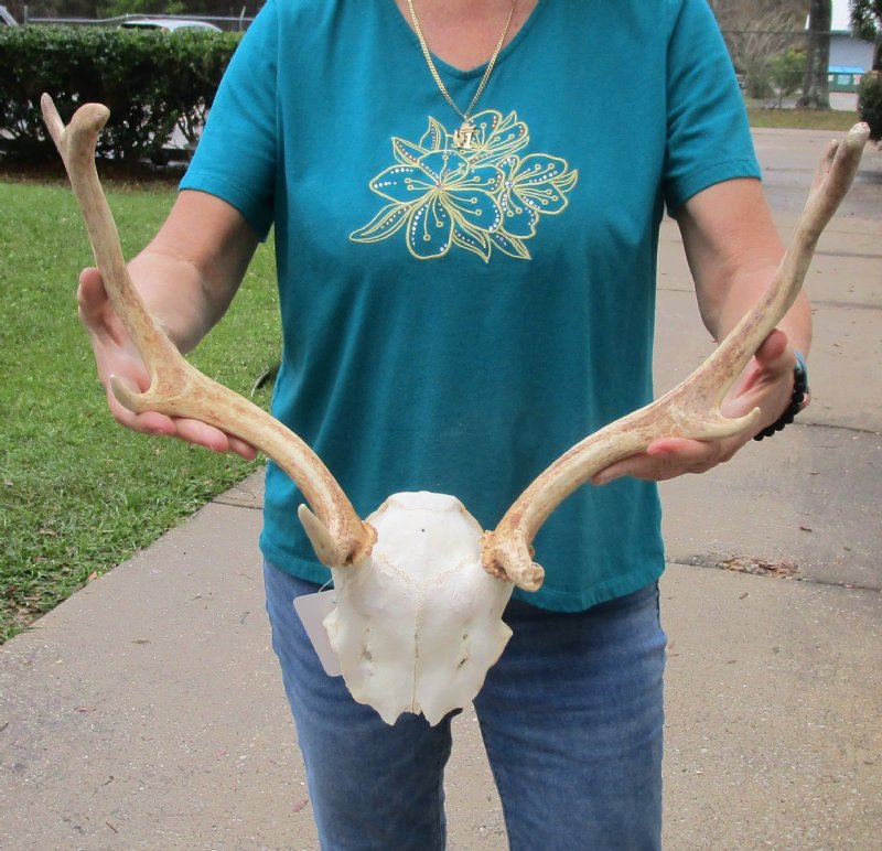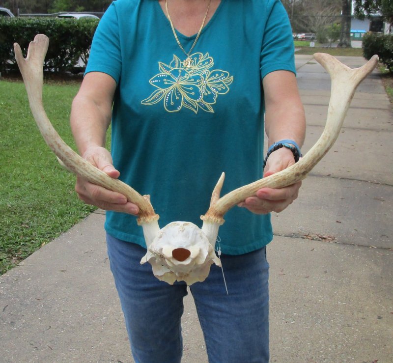 This is a Fallow Deer (Dama dama) Skull plate with Antlers/Horns that are approximately 13 inches long  Review all photos. The horn height is measured from the base of the horn using a straight ruler to the longest point of the horn. The width is measured with a ruler straight across from the left furthest tip of one horn to the right furthest tip of the other horn. These horns cannot be removed for shipping. All of our fallow deer skulls & skull plates are from wild African deer and will have natural imperfections from the natural aging process and living in the wild. This animal was cleared by the U.S. Fish and Wildlife and U.S. Customs for legal entry into the U.S.