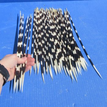 50 medium thickness African porcupine quills (Hystrix africaeaustralis) measuring approximately 12 to 14 inches long.  These are good clean quillsThe bundle may contain a few quills either below or above the size range you ordered.  The thickness will vary within the bundle also. African Porcupine quills are used in American Indian crafts. Quillwork is perhaps the oldest form of embroidery used by Native Americans. Quills were folded, twisted, wrapped, plaited and sewn using a wide range of techniques to decorate articles of clothing, bags, knife sheaths, baskets, wooden handles and pipe stems. Quillwork has been, and continues to be used to decorate the basketry of various Native American tribes.