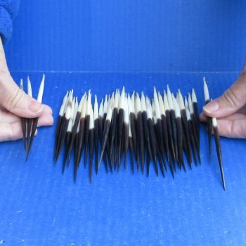 50 thick/fat African porcupine quills (Hystrix africaeaustralis) measuring approximately 4 to 6 inches long.  These are good clean quillsThe bundle may contain a few quills either below or above the size range you ordered.  The thickness will vary within the bundle also. African Porcupine quills are used in American Indian crafts. Quillwork is perhaps the oldest form of embroidery used by Native Americans. Quills were folded, twisted, wrapped, plaited and sewn using a wide range of techniques to decorate articles of clothing, bags, knife sheaths, baskets, wooden handles and pipe stems. Quillwork has been, and continues to be used to decorate the basketry of various Native American tribes.