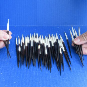 50 thick/fat African porcupine quills (Hystrix africaeaustralis) measuring approximately 4 to 6 inches long.  These are good clean quillsThe bundle may contain a few quills either below or above the size range you ordered.  The thickness will vary within the bundle also. African Porcupine quills are used in American Indian crafts. Quillwork is perhaps the oldest form of embroidery used by Native Americans. Quills were folded, twisted, wrapped, plaited and sewn using a wide range of techniques to decorate articles of clothing, bags, knife sheaths, baskets, wooden handles and pipe stems. Quillwork has been, and continues to be used to decorate the basketry of various Native American tribes.