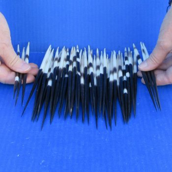 50 thick/fat African porcupine quills (Hystrix africaeaustralis) measuring approximately 7 to 8 inches long.  These are good clean quillsThe bundle may contain a few quills either below or above the size range you ordered.  The thickness will vary within the bundle also. African Porcupine quills are used in American Indian crafts. Quillwork is perhaps the oldest form of embroidery used by Native Americans. Quills were folded, twisted, wrapped, plaited and sewn using a wide range of techniques to decorate articles of clothing, bags, knife sheaths, baskets, wooden handles and pipe stems. Quillwork has been, and continues to be used to decorate the basketry of various Native American tribes.