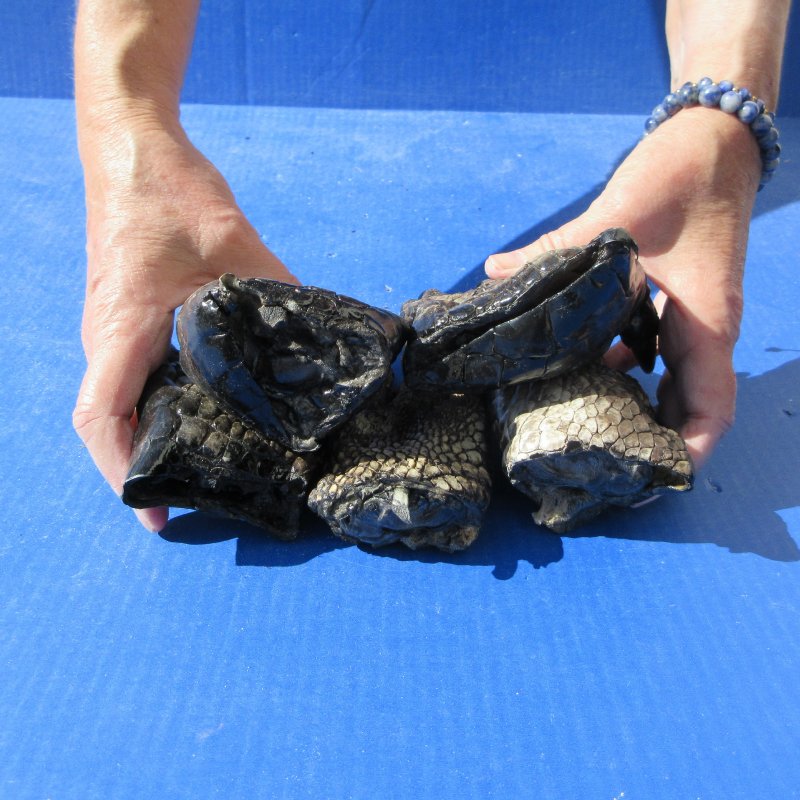 5 Piece Lot of Preserved Alligator Feet, measuring approximately 5 to 6 inches in length. The ends of the foot have been rough cut and painted black.  Review all photos. This alligator foot will have an odor from the preservation process that will subside over time. This is a Real Gator Foot - Not a Replica. It will have natural imperfections. These alligator feet come from gator farms where the gators are harvested for their meat and hide.