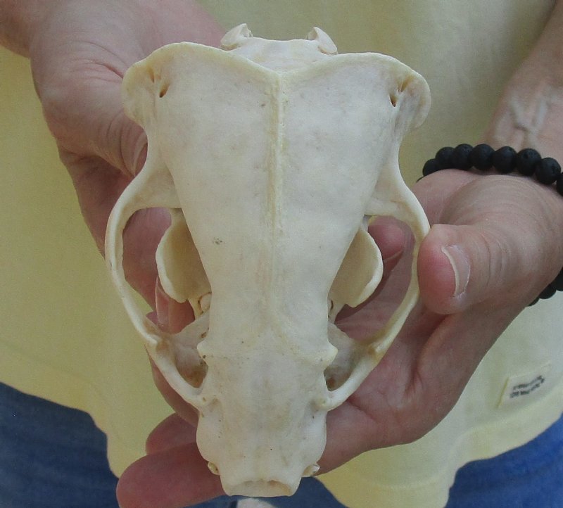 North American Badger Skull (Mephitidae) for sale. The skull measures approximately 4-3/4 inches long by 3 inches wide. - Review all photos. This badger skull will have natural imperfections found on all wild animal skulls living and aging in the wild. Our badger skulls have been cleaned and whitened; however, these skulls may have patches of discoloration. The mouth has been glued shut.