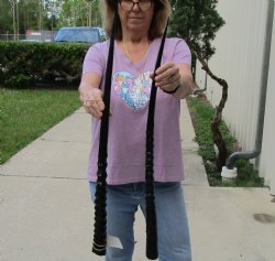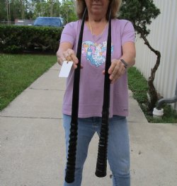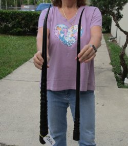 We hand selected and photographed polished gemsbok horns and polished gemsbok antlers for making shofars and for making polished gemsbok archery bows, sconces and furniture legs. You will be buying the actual polished gemsbok horns or polished gemsbok antlers shown in the photos. They measure between approximately 25 inches and 40 inches in length. A few of these gemsbok horns have a small drilled hole near the tip.