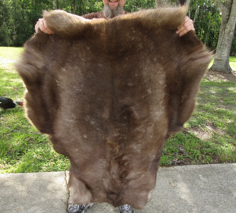 Grade B Reindeer hide, reindeer skin without legs imported from Finland, farm raised for food.  This hide measures approximately 44 inches long and 34 inches wide.  Slice on end on back of skin - Review all photos. This reindeer fur without legs is professionally tanned and imported from Finland.  The legs have been trimmed off. This reindeer hide without legs is a natural and comfortable product and looks great as a wall decoration in a cabin or den, as furniture throws or decorative rugs but should not be walked or stepped on, to prevent shedding and breaking of the fur.  Reindeer skins and hides should be cleaned once a year with a standard vacuum on the lowest power.
