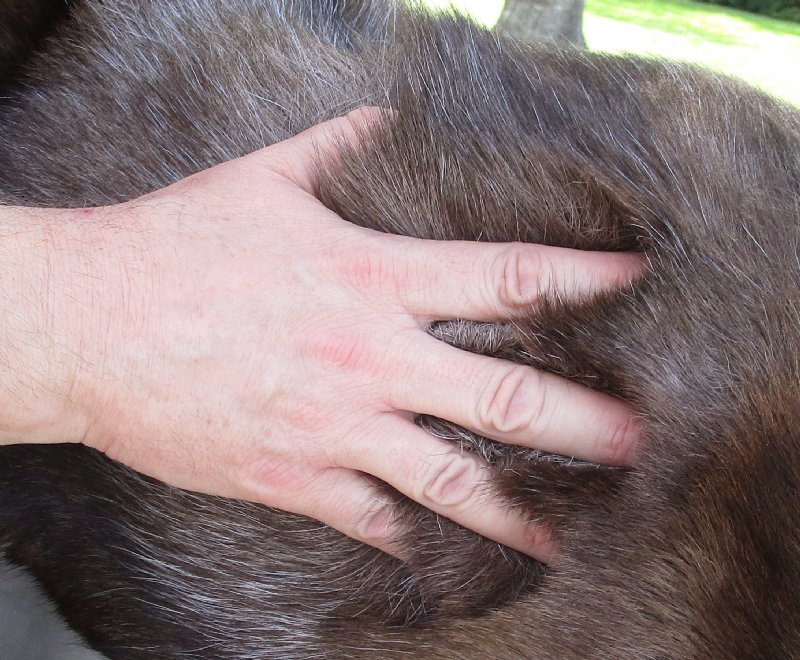 Grade B Reindeer hide, reindeer skin without legs imported from Finland, farm raised for food.  This hide measures approximately 46 inches long and 34 inches wide.  Review all photos. This reindeer fur without legs is professionally tanned and imported from Finland.  The legs have been trimmed off. This reindeer hide without legs is a natural and comfortable product and looks great as a wall decoration in a cabin or den, as furniture throws or decorative rugs but should not be walked or stepped on, to prevent shedding and breaking of the fur.  Reindeer skins and hides should be cleaned once a year with a standard vacuum on the lowest power.