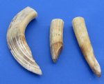 We carry hippo ivory, hippo tusk and have hand selected and photographed a selection of ivory and offer them for sale. Hippo Tusk is a type of ivory for carving and is available in curved hippo tusk, long straight hippo tusk, long curved hippo ivory, semi curved hippo ivory, short straight hippo ivory and toe nails. Ivory for carving from a hippo tusk or hippo ivory is used in making jewelry and in making inlaid ivory knife handles. The hippo tusk of the lower canine is curved and has a triangular cross section; the hippo tusk of the incisor is straight and has a circular cross section. Hippo ivory does not have a thick enamel coating. Hippo ivory is denser than elephant ivory, harder to carve, and has a finer grain. Hippo ivory has concentric rings in cross sections and hippo ivory is less prone to decay than elephant ivory.