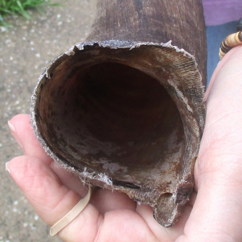 Kudu horn for sale (Tragelaphus angasi) imported from South Africa, measuring approximately 43, measured around the curl of the horn - not straight. Frayed at base of horn. Review photos. Kudu horns are used in making blowing horns, kudu horn instruments, furniture legs, lamps, sconces, knife handles, cane handles, inlaid crafts and numerous other taxidermy crafts.